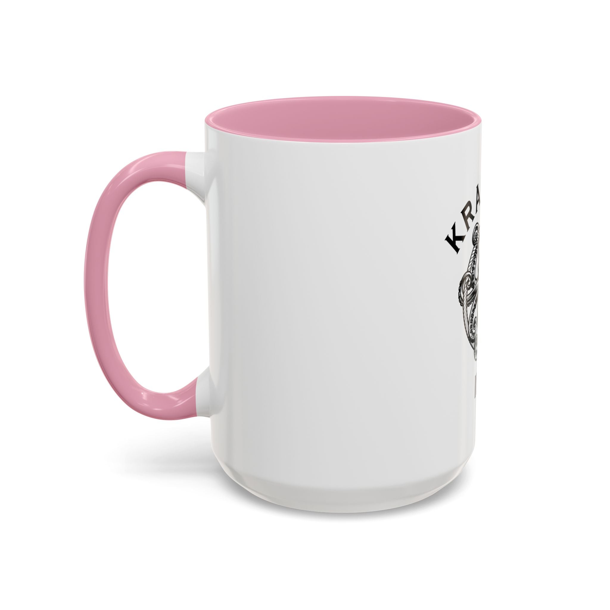 A glossy ceramic mug that brings bold, nautical attitude to every sip. The design centers on a detailed kraken illustration and hand-lettered text, printed with high-definition color for crisp lines and deep contrast against the white surface. Choose from two sizes (11oz or 15oz) and twelve accent colors for the handle and interior to match your style — the black-accent option shown gives the ink-like artwork extra edge. Built with a hardened ORCA coating so the image stays vivid, plus a comfortable C-shaped handle for everyday use. Dishwasher- and microwave-safe, this mug fits into morning routines, late-night sketch sessions, or a creative studio shelf where inspiration and a strong cup of coffee matter.