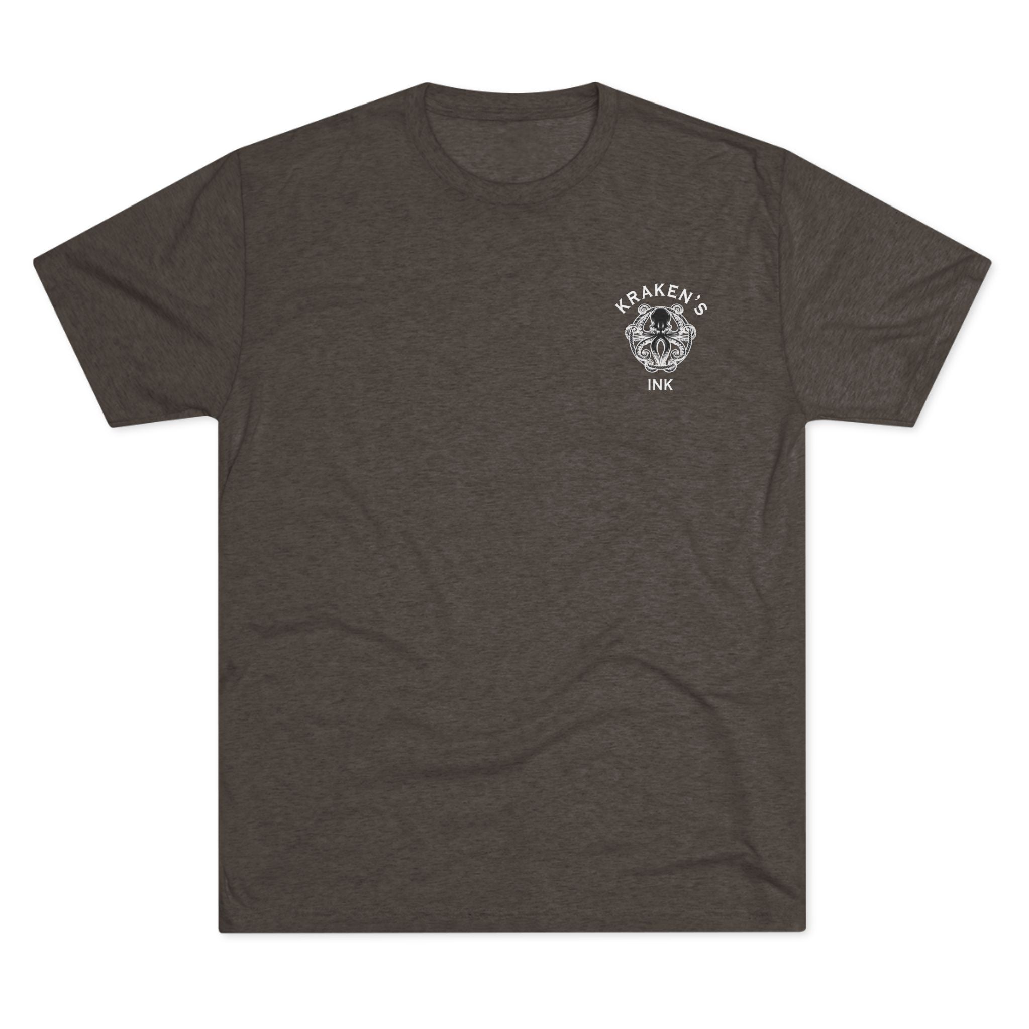 A soft, lived-in crew tee that carries a quiet kind of pride. The lightweight tri-blend drapes like a favorite shirt while the detailed Kraken artwork—small chest emblem up front, bold full-back print—adds salty, sea‑tested character. Wear it on long drives, at low-key boat nights, or when you want to show allegiance to the ocean and those who serve it. The shirt breathes through summer heat and layers cleanly under a jacket for cooler evenings. Subtle vintage tones in the print pair with the heathered fabric for an easy, broken-in look that feels personal the moment you pull it on.